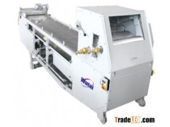 The cooler is consisted of cooling rolls , stainless steel segment conveyor , air blowers , crushers , frame and motors . The kneading material coming down from extruder are squeezed by the rolls into a long and wide sheet at thickness 1-1.5mm. The rolls are chilled by chilling water inside . The sheet is conveyed into the crusher while cooled by fans or chilled air blower continuously , in the end , the crusher breaks the sheet in to chips and chips fall down to the material container.
